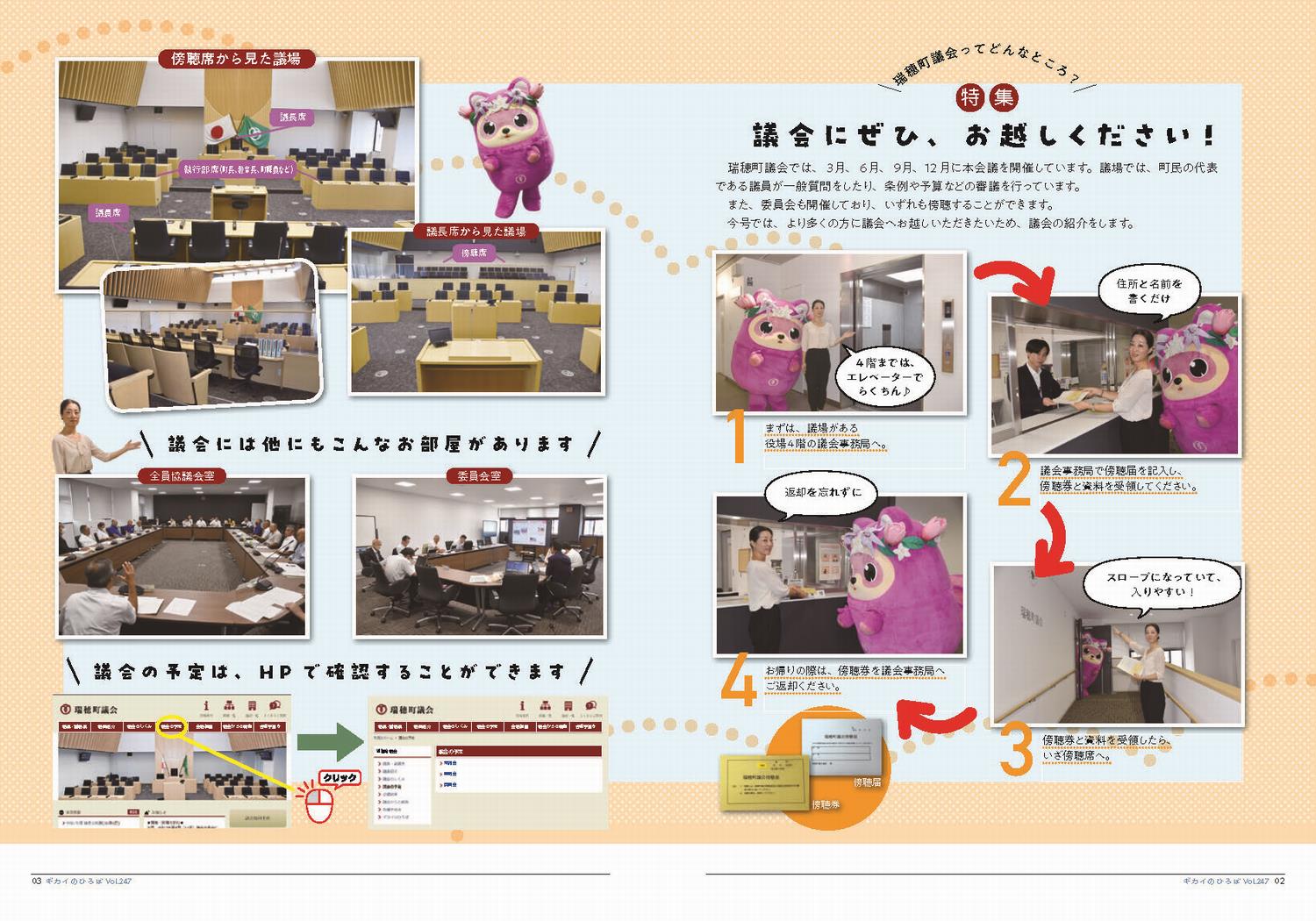 内容は、議会の結果、議員活動や活躍されている町内の団体などの特集で、広報広聴委員会が作成し、原則として年4回(2月、5月、8月、11月)発行しています。