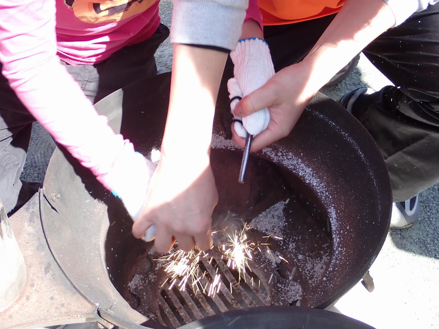 大人の見守りのもと、さまざまな火の起こし方を体験しました。