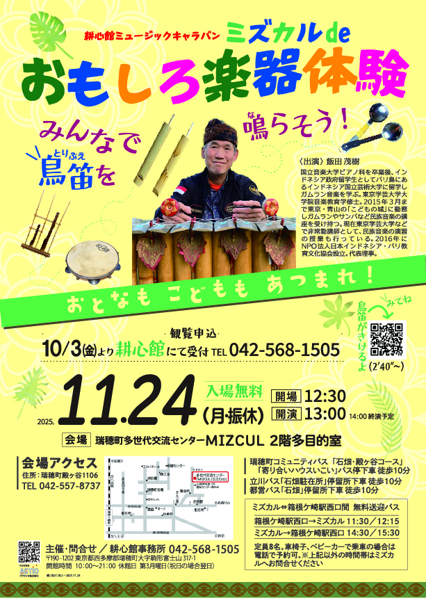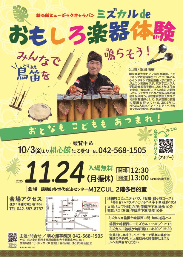 耕心館ミュージックキャラバン ミズカルdeおもしろ楽器体験 みんなで鳥笛を鳴らそう!