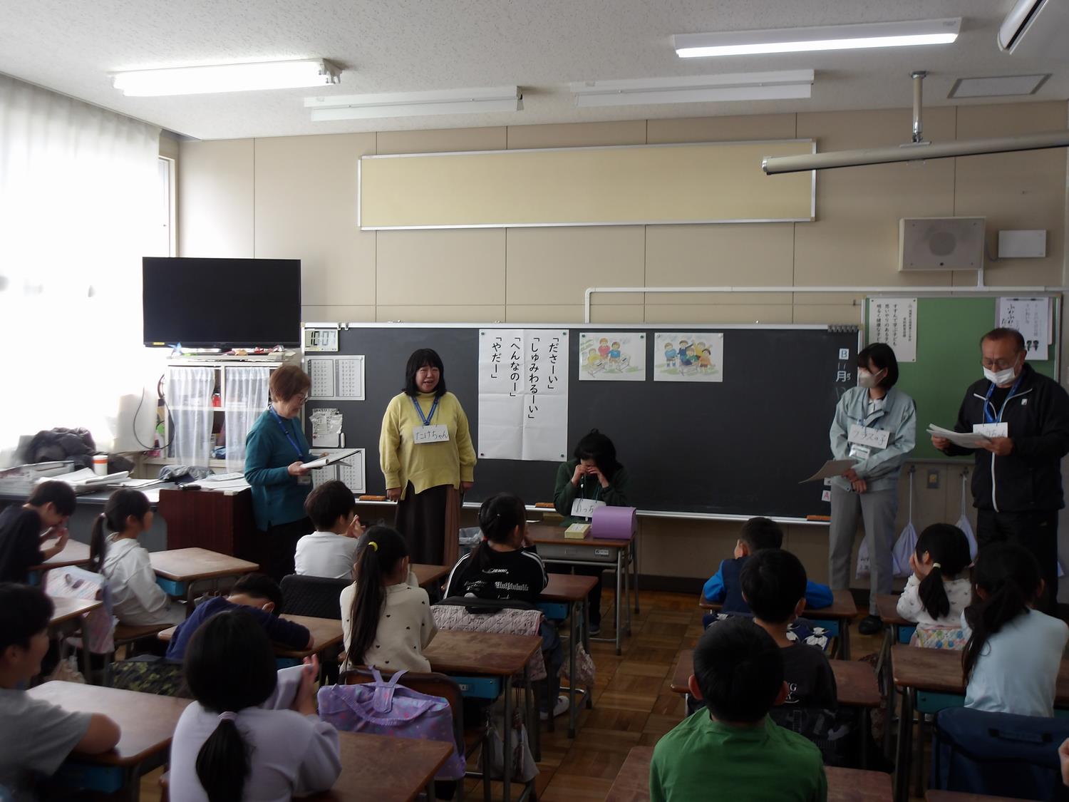 人権擁護委員3人を講師として迎え、『いっちゃん、ごめんね』の劇を通し、いじめ等の人権について、児童一人一人が改めて考える場となりました。